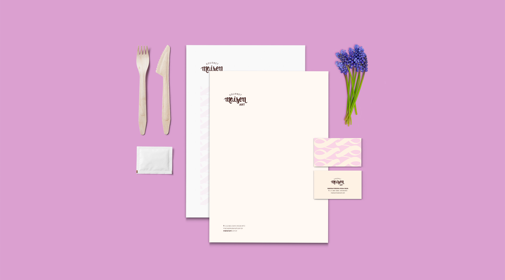 Com base nesta proposta para trazer mais arte em cada produto, foi desenvolvida uma caligrafia totalmente original para a marca, uma vez que a caligrafia é conhecida como a "arte da bela escrita". Acreditamos que a caligrafia desenvolvida para a Maison Art Gourmet traz toda a arte, bom gosto e qualidade que a empresa traz em seus produtos.