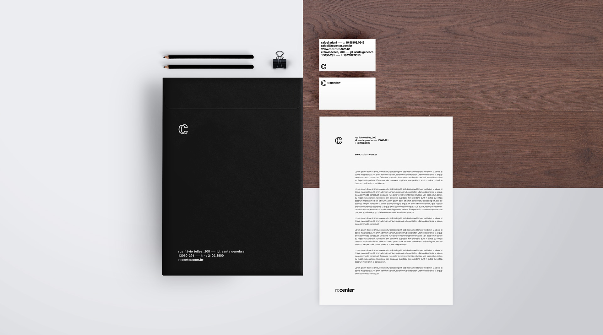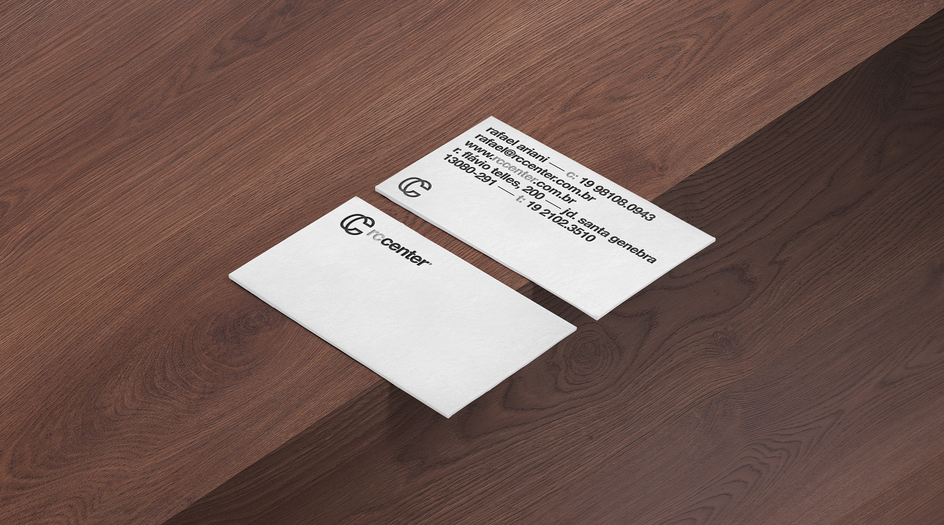 Para a criação do logo e identidade visual da RC CENTER, nós estabelecemos uma relação entre a grafia da marca e o mercado no qual atua. Analisando a grafia RC CENTER podemos ver as duas letras “C” juntas, duplicadas, repetidas.